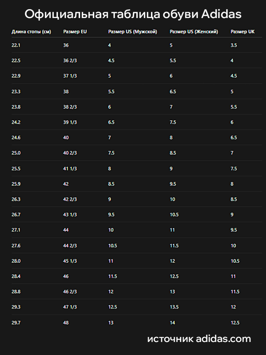Длина стопы CM