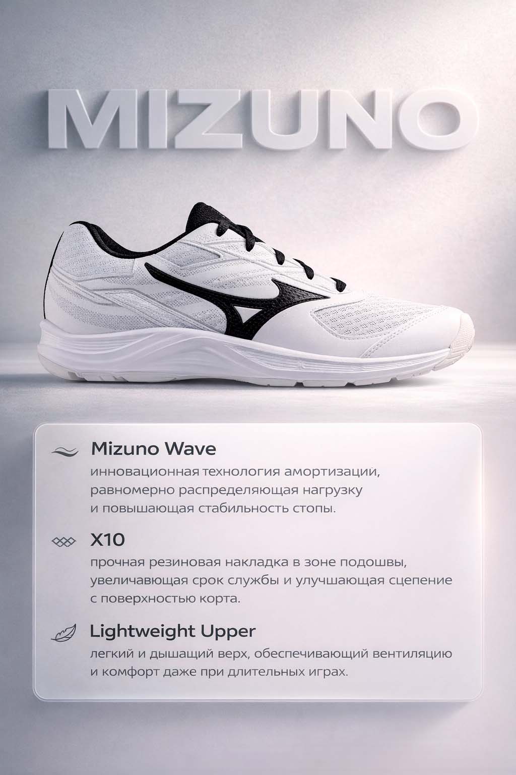 - Технологии: Mizuno Wave, X10