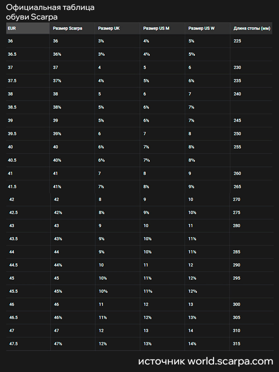 Длина стопы CM: