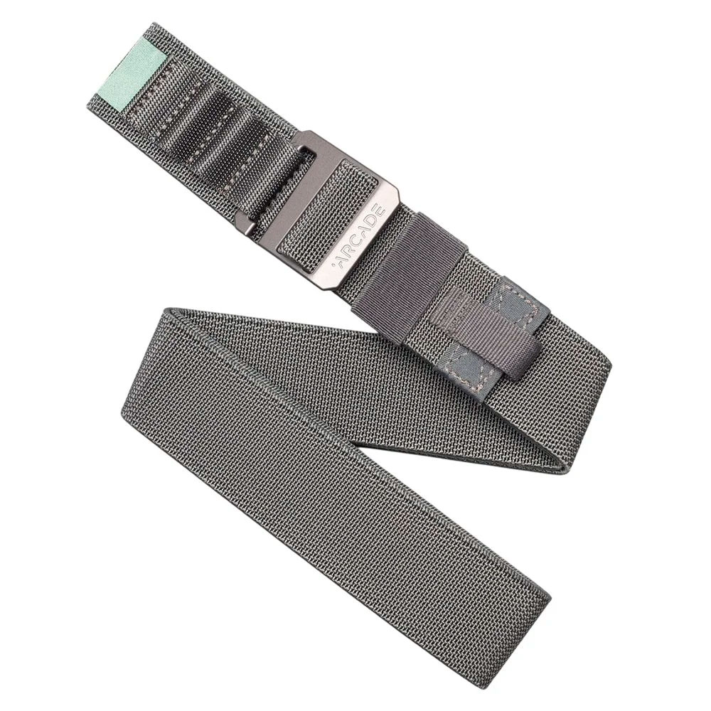 Универсальный ремень Arcade Hardware Alu с алюминиевой пряжкой и эластичной лентой — лёгкий, прочный и удобный вариант для спорта, путешествий и повседневной носки.