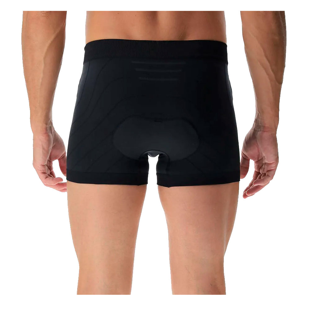 Высокотехнологичные боксеры UYN теперь можно брать с собой в поездки на горном велосипеде, электровелосипеде или в городскую поездку благодаря специальной подкладке HC110, которая обеспечивает максимальную защиту при минимальных помехах. Крой разработан таким образом, чтобы обеспечить стабильность и комфорт во время педалирования. В то же время, использование материала Natex делает эти боксеры легкими и быстросохнущими. Трехмерные вентиляционные структуры 4-Ways и система Coolvent обеспечивают отличную воздухопроницаемость и приятный терморегулирующий поток воздуха к коже. - Вязаный логотип - Эластичная талия и окантовка вокруг бедер для идеальной посадки