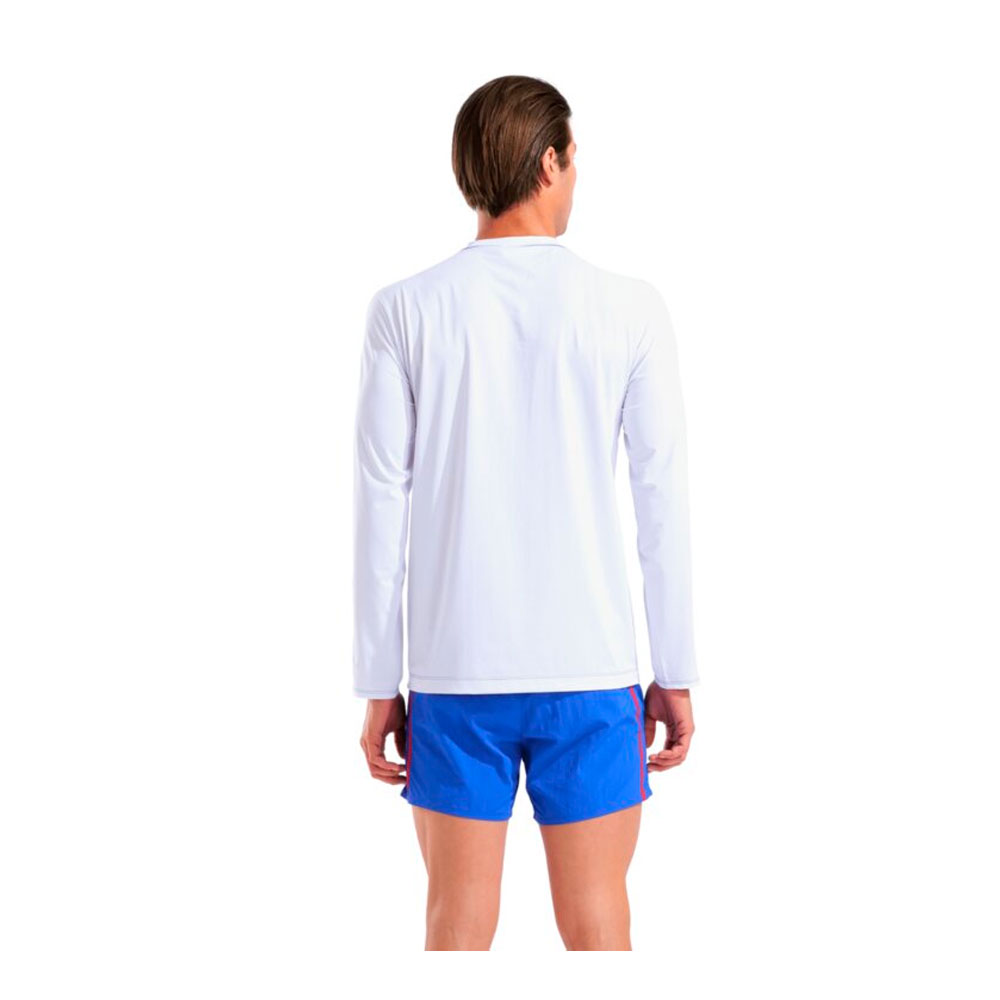 Материал быстро сохнет, устойчив к воздействию солёной и хлорированной воды, не теряет форму и цвет при регулярном использовании. Футболка подходит для мужчин с любым уровнем подготовки — от начинающих до регулярно тренирующихся пловцов, а также для отдыха и водных видов спорта.