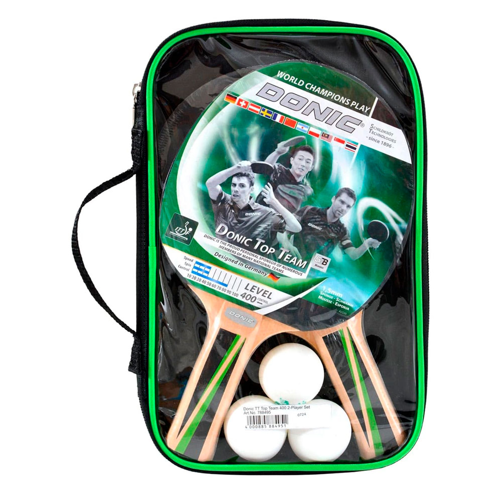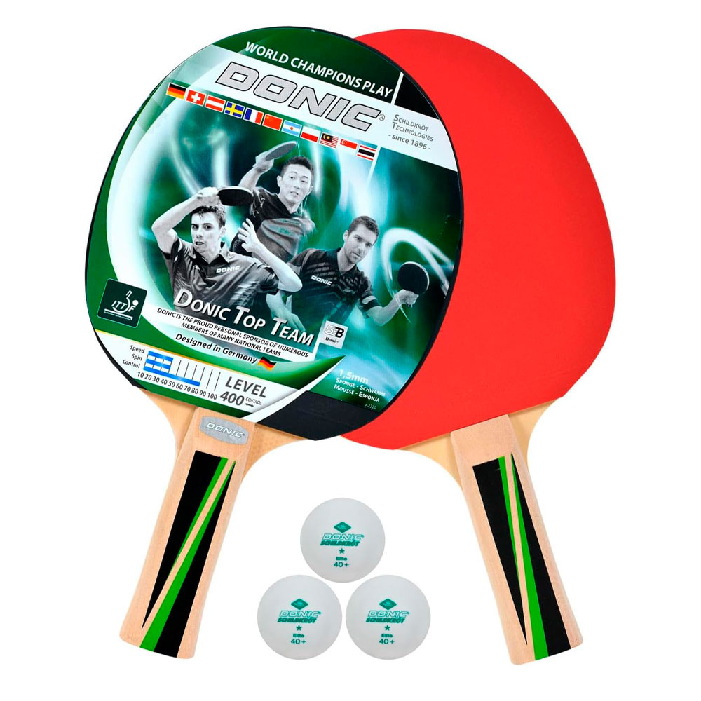 Набор Donic Schildkrot Top Team 400 – это отличный выбор для любителей настольного тенниса, которые хотят тренироваться дома или играть с друзьями на любительском уровне. В комплект входят две качественные ракетки и три фирменных мяча, что делает его полноценным стартовым набором.