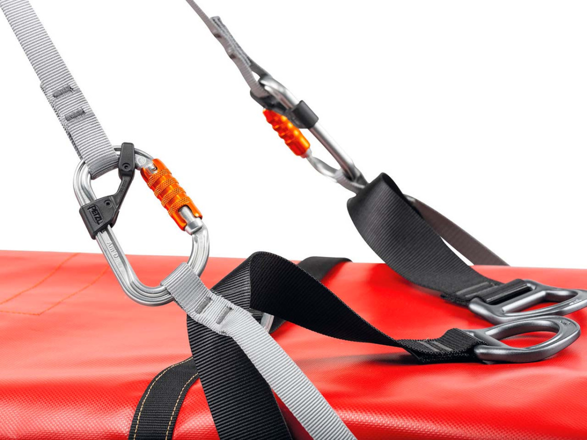 О: Устройство разработано в первую очередь для совместимости с жесткими спасательными носилками Petzl Nest, но может использоваться и с другими моделями, имеющими соответствующие точки крепления.