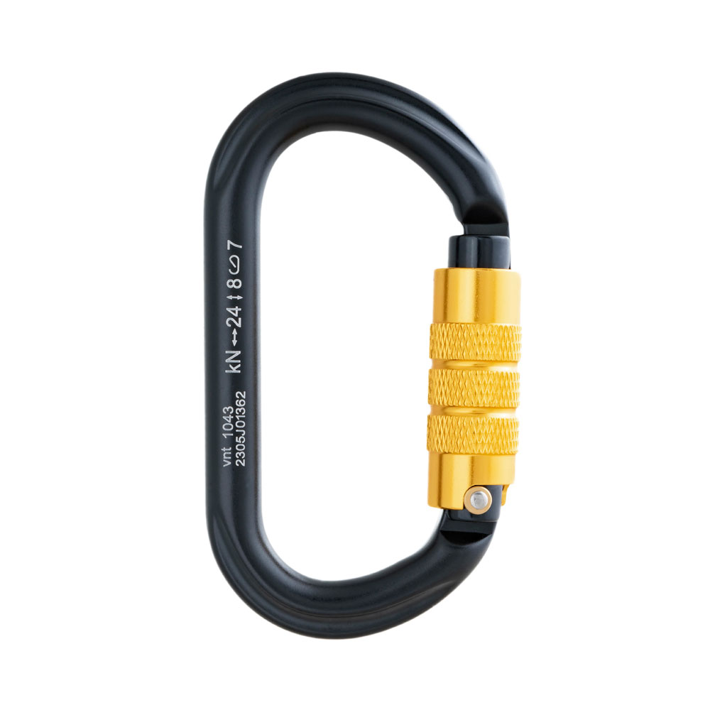 Главное отличие этой модели — сочетание овальной формы с байонетной муфтой. В отличие от D-образных карабинов, овальная форма лучше работает с блок-роликами и другими симметричными устройствами. По сравнению с винтовыми муфтами, байонетный замок ускоряет процесс блокировки и минимизирует риск случайного открытия.