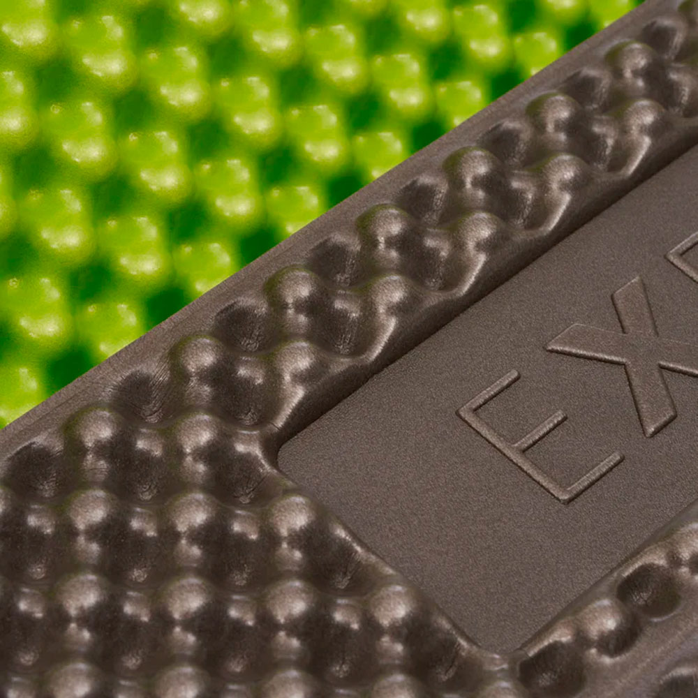 Закрытоячеистая пена устойчива к влаге и не впитывает воду, сохраняя теплоизоляционные свойства даже на сырой поверхности. Складная панельная конструкция повышает долговечность, снижает риск деформации и обеспечивает быстрое раскладывание. Текстурированная поверхность уменьшает скольжение спальника и улучшает комфорт во время сна.