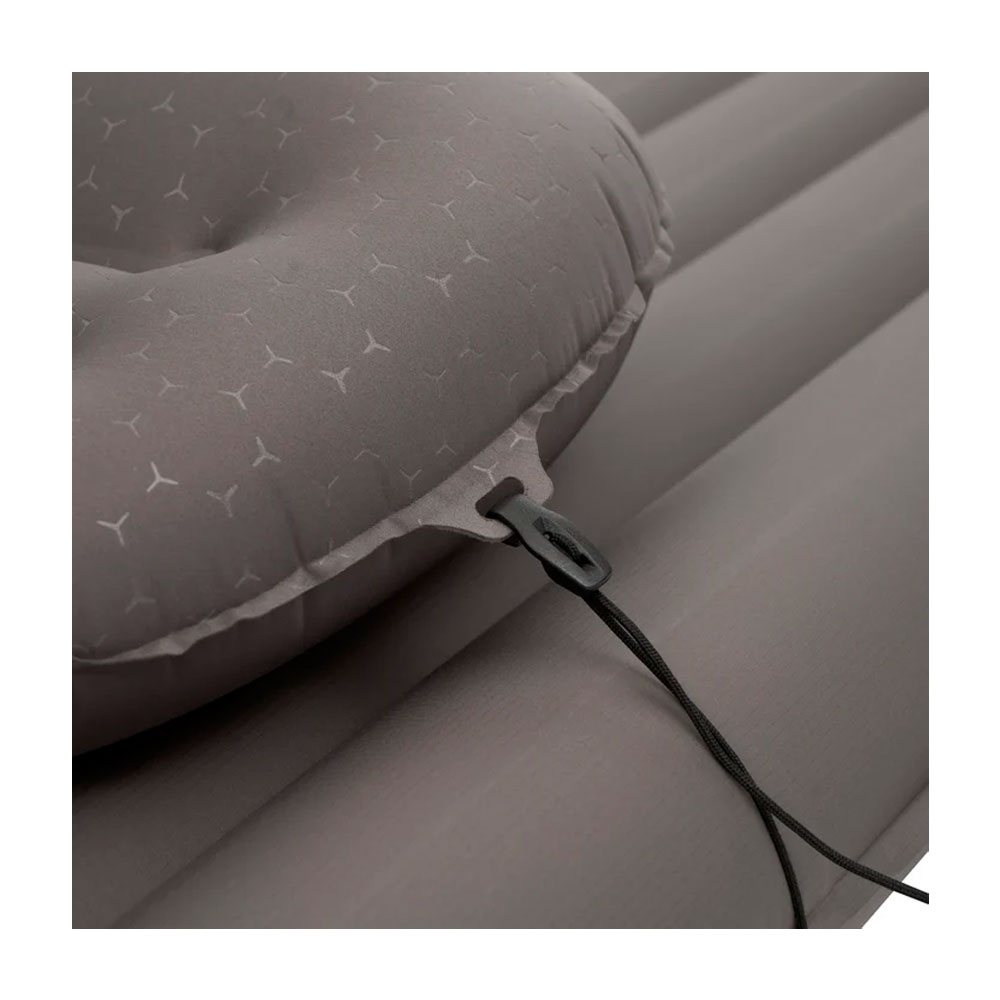 Модель выполнена из переработанного эластичного полиэстера с мягкой текстурой, устойчивого к истиранию и влаге. Конструкция камер обеспечивает равномерное распределение давления и стабильную форму во время сна. Плоский клапан FlatValve позволяет точно регулировать жесткость и быстро сдувать подушку для компактной упаковки.