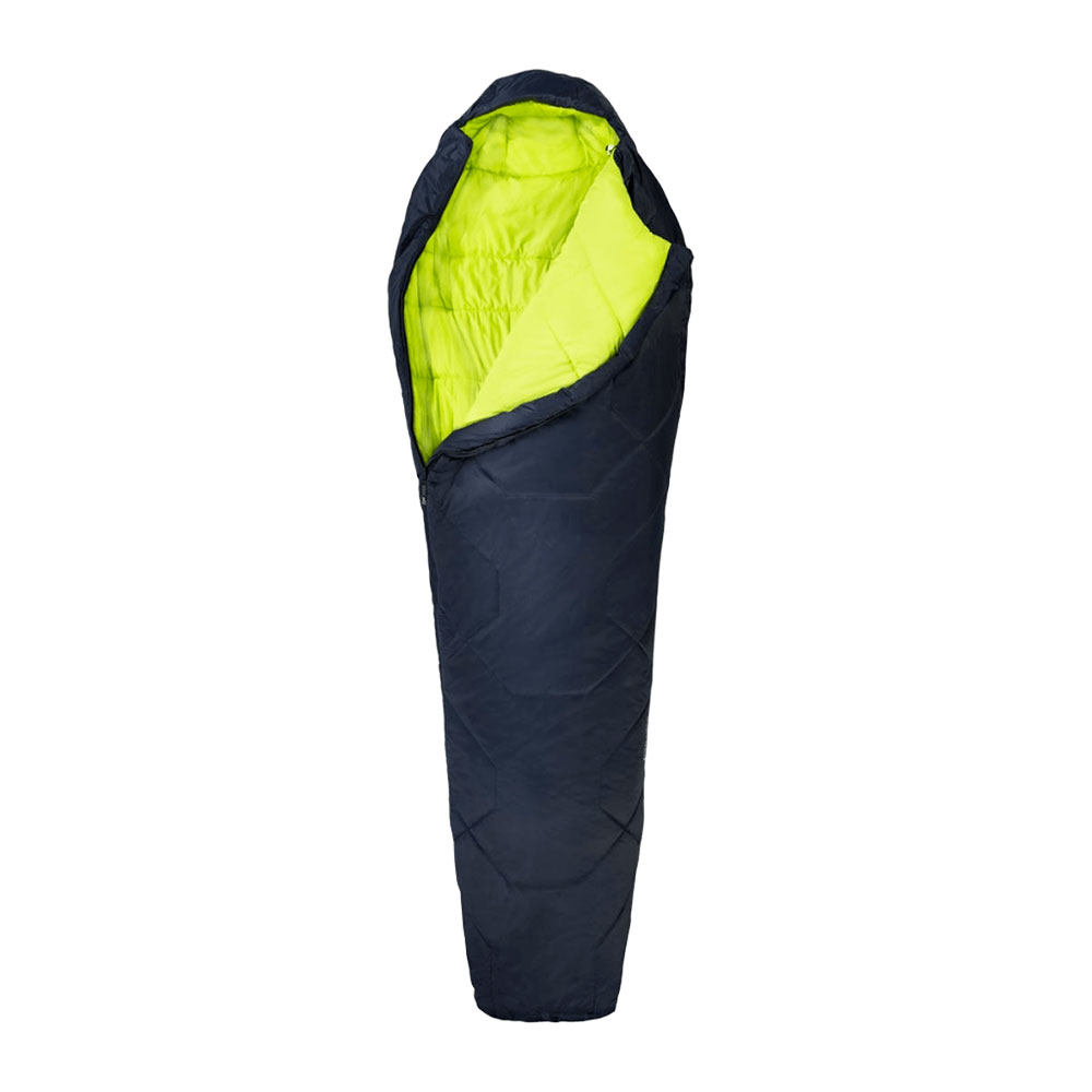 В конструкции предусмотрены практичные решения для туристического использования: двусторонняя боковая молния, внутренняя антихолодная планка, регулируемый капюшон и внутренний карман для мелочей. Благодаря возможности выбрать левую или правую молнию совместимые версии можно состёгивать между собой. Это делает модель более универсальной для парных выездов и разных сценариев использования в лагере.
