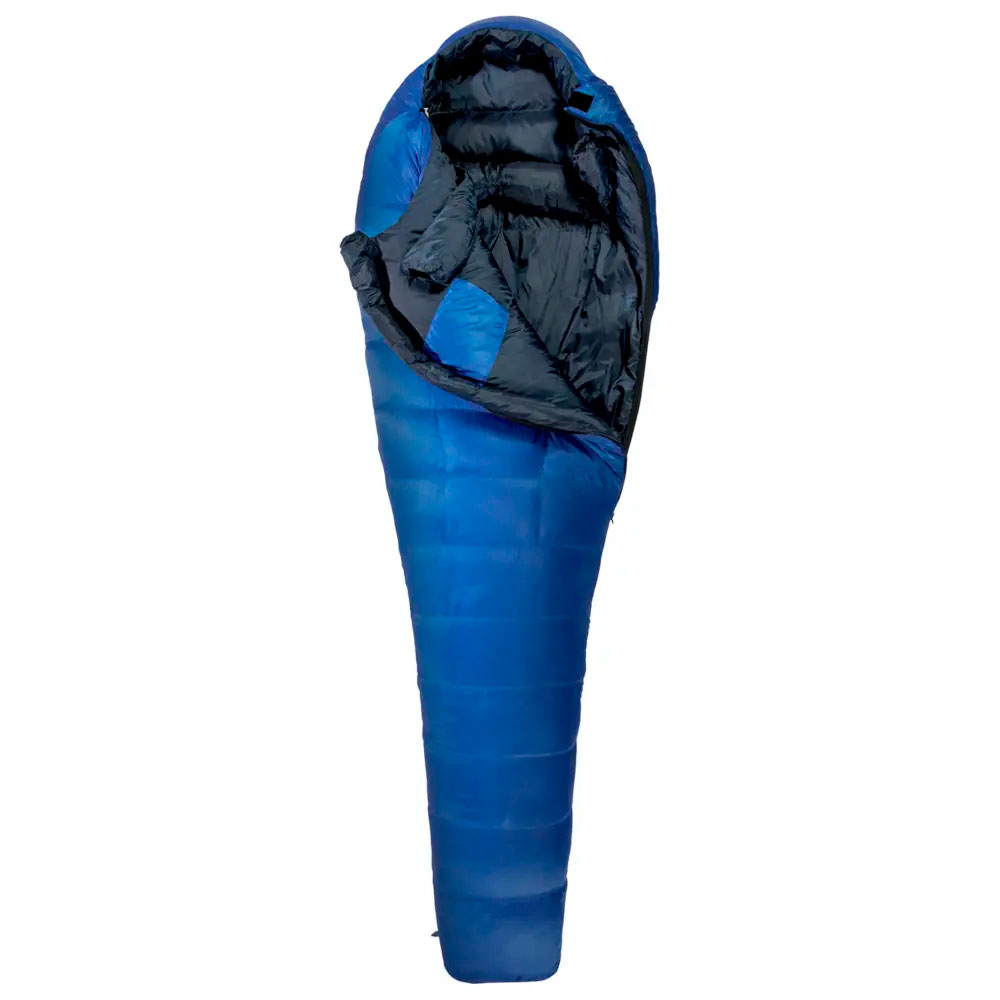В основе конструкции используется пуховый утеплитель K Dry Duck Down FP700 с составом 90% утиный пух и 10% перо. Такое решение позволяет сохранить хорошее соотношение тепла и веса, поэтому спальник подходит для продолжительных маршрутов, где важно снизить нагрузку на снаряжение. Водоотталкивающая обработка DWR без PFC помогает лучше противостоять влаге и конденсату, а внутренняя противохолодная планка вдоль молнии уменьшает потери тепла.