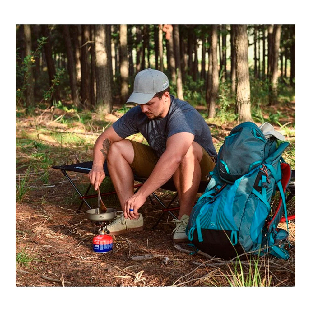 - 100% титан — материал с высокой стойкостью к коррозии и хорошим ресурсом в походных условиях, не боится влажности и частого мытья.
