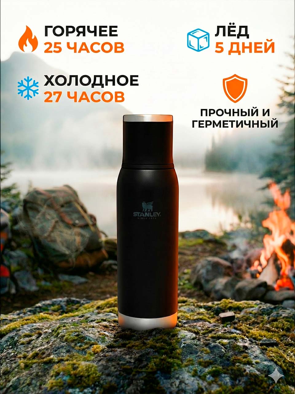 - Insulated lid — утеплённая крышка, которую можно использовать как кружку.