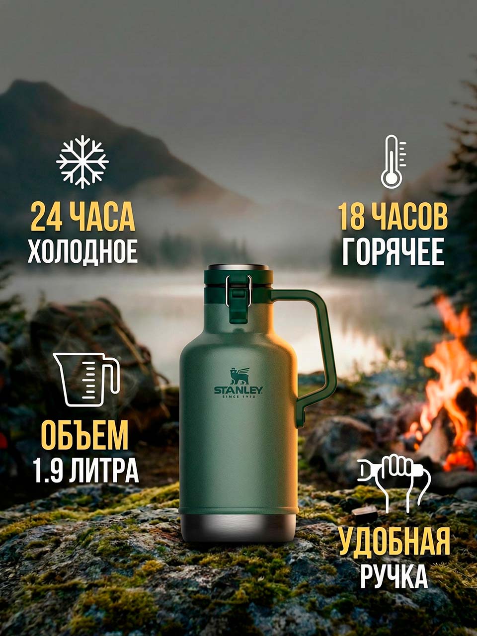 Stanley  термос Classic Vac Growler (1.9 L, green)
