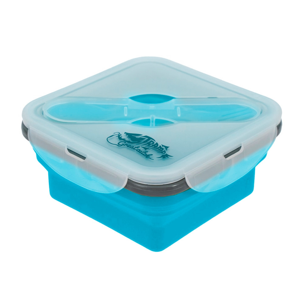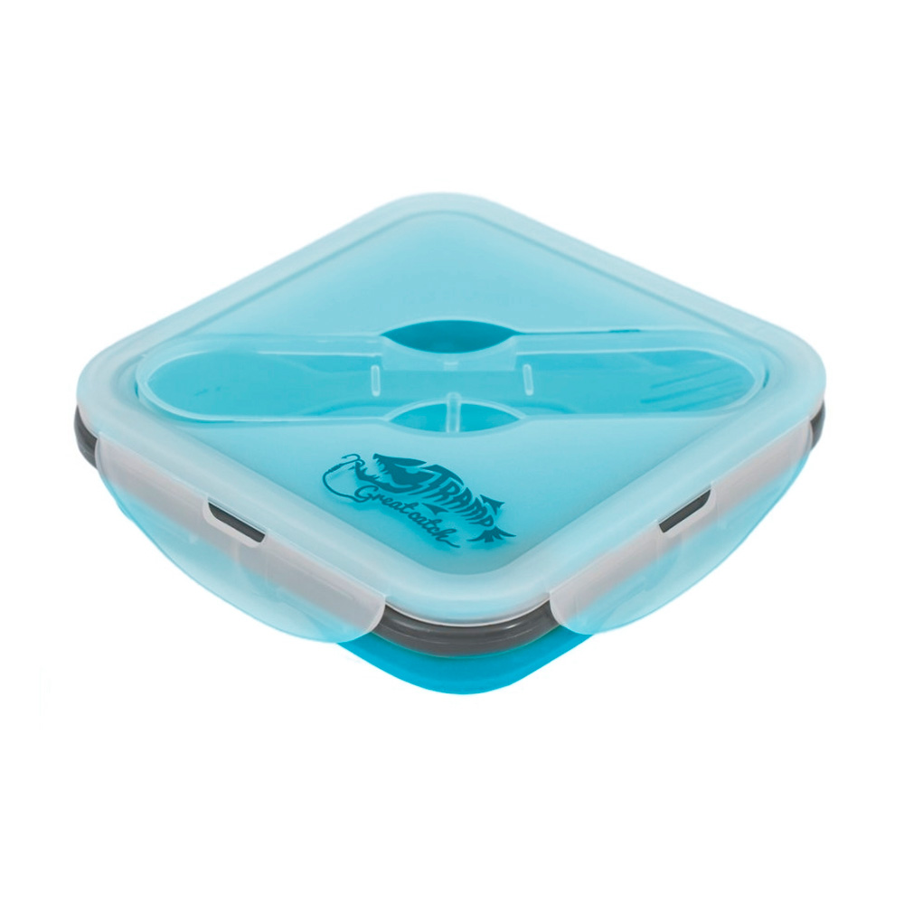 Контейнер изготовлен из высококачественного пищевого силикона и полипропилена. Эти материалы устойчивы к перепадам температур, что позволяет использовать изделие в микроволновой печи (без крышки) и помещать в морозильную камеру. Инженерное решение в виде складных стенок обеспечивает долговечность конструкции при многократной трансформации. Плотная крышка с защелками гарантирует гигиеничность хранения, а встроенный отсек для ловилки предотвращает ее потерю и загрязнение.