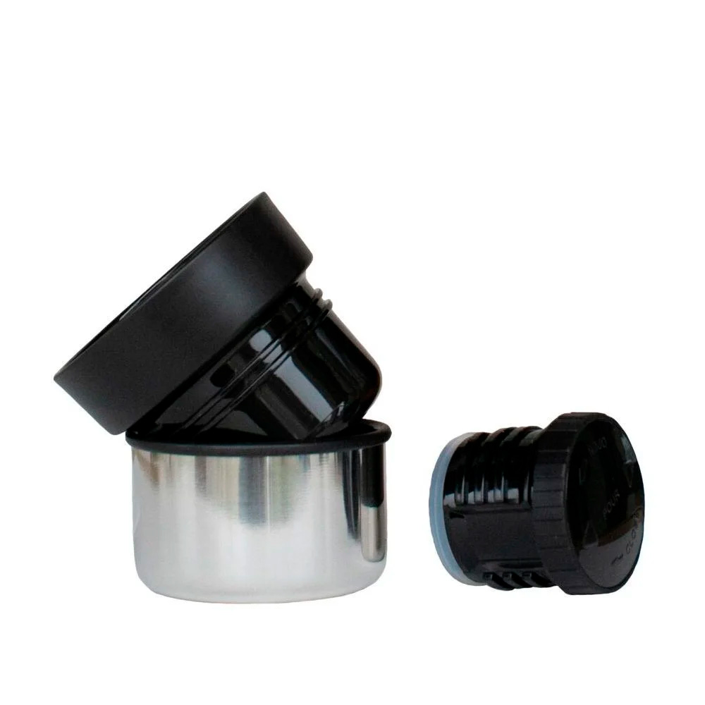 В комплектацию входят две чашки: основная металлическая крышка-чашка объемом 130 мл и дополнительная пластиковая пиала объемом 100 мл, скрытая под ней.