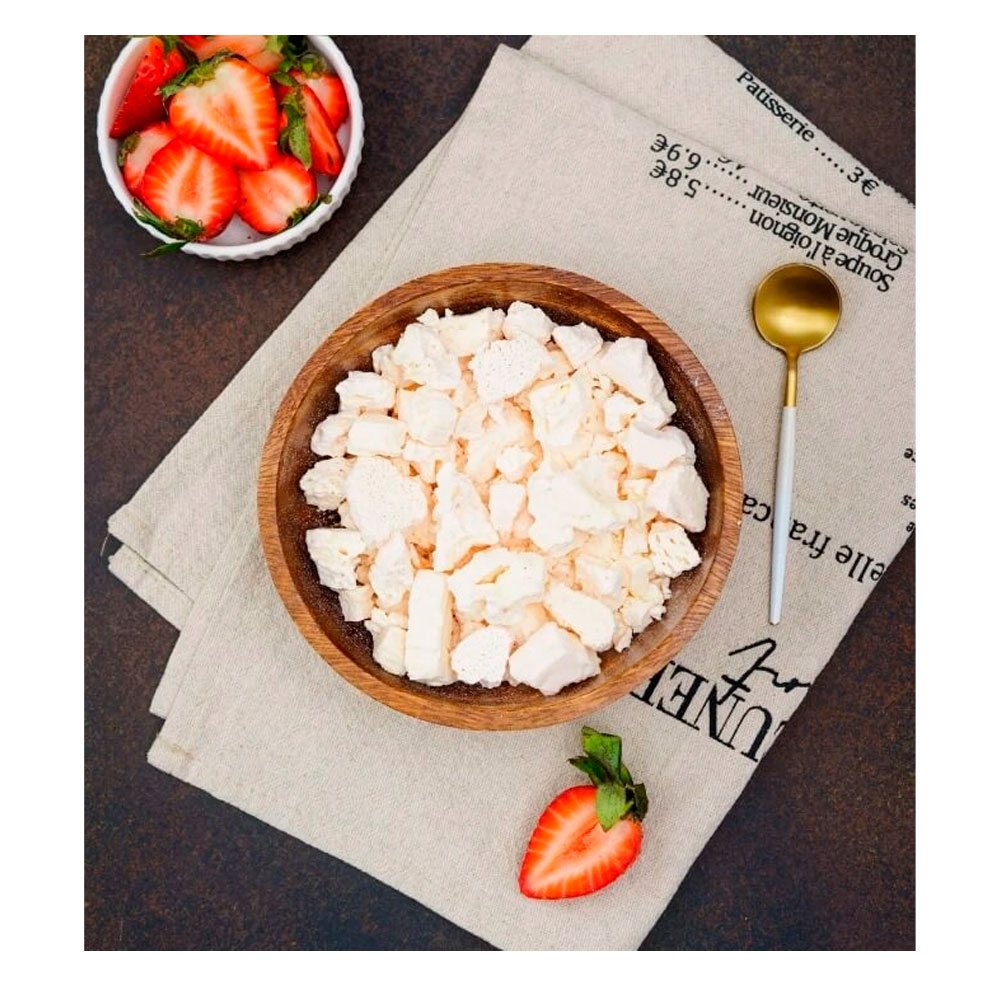 Сублимационная сушка удаляет влагу при низких температурах в вакууме, сохраняя структуру, вкус и пищевую ценность. Йогурт не требует хранения в холодильнике, имеет долгий срок годности и не содержит консервантов.
