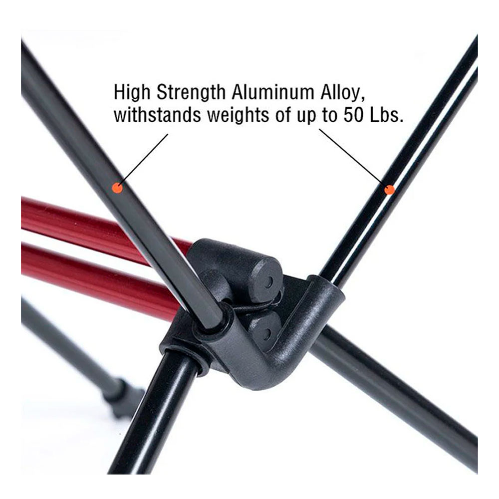 Алюминиевый каркас. Основа стола выполнена из алюминиевого сплава, что дает хороший баланс между малым весом и жесткостью. Двойные перекрестные опоры и цельные соединители повышают устойчивость конструкции при размещении посуды и снаряжения.