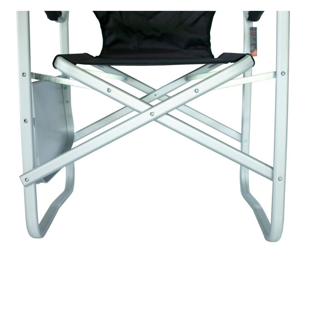 Основой изделия является каркас из плоскоовального алюминиевого профиля. Такая геометрия труб значительно увеличивает жесткость конструкции и ее сопротивляемость на изгиб по сравнению с традиционными круглыми трубками. Откидной столик с правой стороны оснащен интегрированным подстаканником, что позволяет размещать напитки и личные вещи без риска их опрокидывания. На левой стороне расположен многофункциональный органайзер с несколькими отделениями для хранения мобильных устройств, рыболовных снастей или инструментов. Тканевая часть выполнена из износостойкого полиэстера 600D Oxford с усиленным плетением, устойчивого к воздействию ультрафиолета и механическим повреждениям.