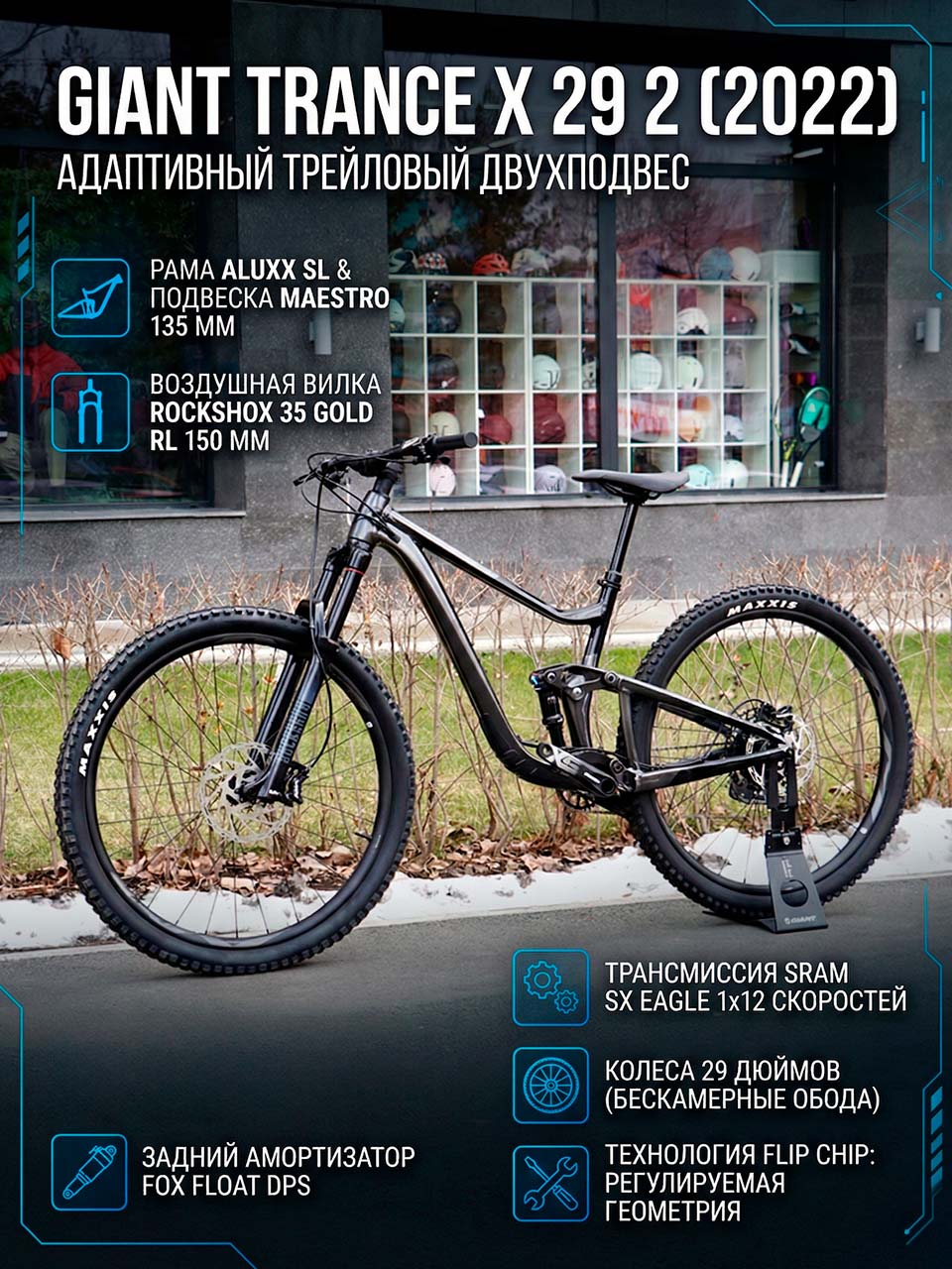 Горный велосипед Giant Trance X 29 2 2022 года — это прогрессивный двухподвес, спроектированный для райдеров, которые стремятся расширить границы своих возможностей на пересеченной местности. Модель разработана для взрослых пользователей среднего и продвинутого уровня, предпочитающих динамичное катание по горным тропам, сложным спускам и техничным подъемам. Благодаря сочетанию больших колес и увеличенного хода подвески, этот байк обеспечивает идеальный баланс между скоростью найнера и маневренностью трейлового аппарата.