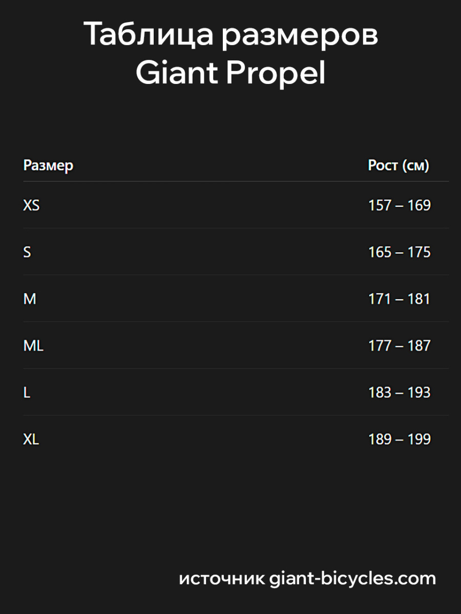 Giant Propel Advanced 2 — это не просто велосипед, а инструмент для достижения спортивных целей. Его агрессивный силуэт, продуманная геометрия и технические инновации делают его идеальным партнёром для быстрого и уверенного движения по шоссе.