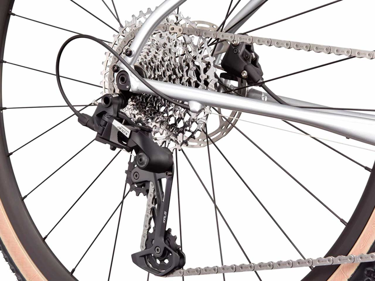 Легкая алюминиевая рама с продуманной геометрией обеспечивает устойчивое и комфортное управление даже в условиях бездорожья. Благодаря увеличенному клиренсу рамы можно устанавливать широкие покрышки, которые обеспечивают превосходное сцепление и амортизацию на гравии и в грязи.
