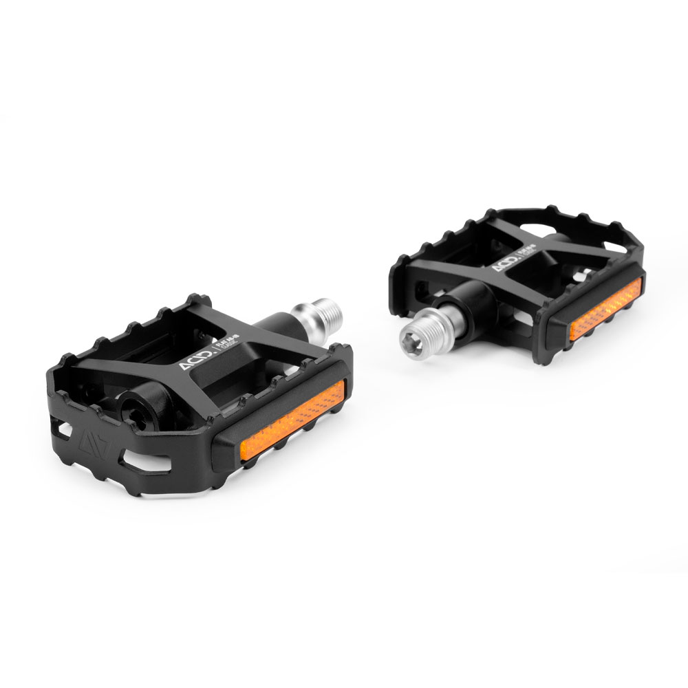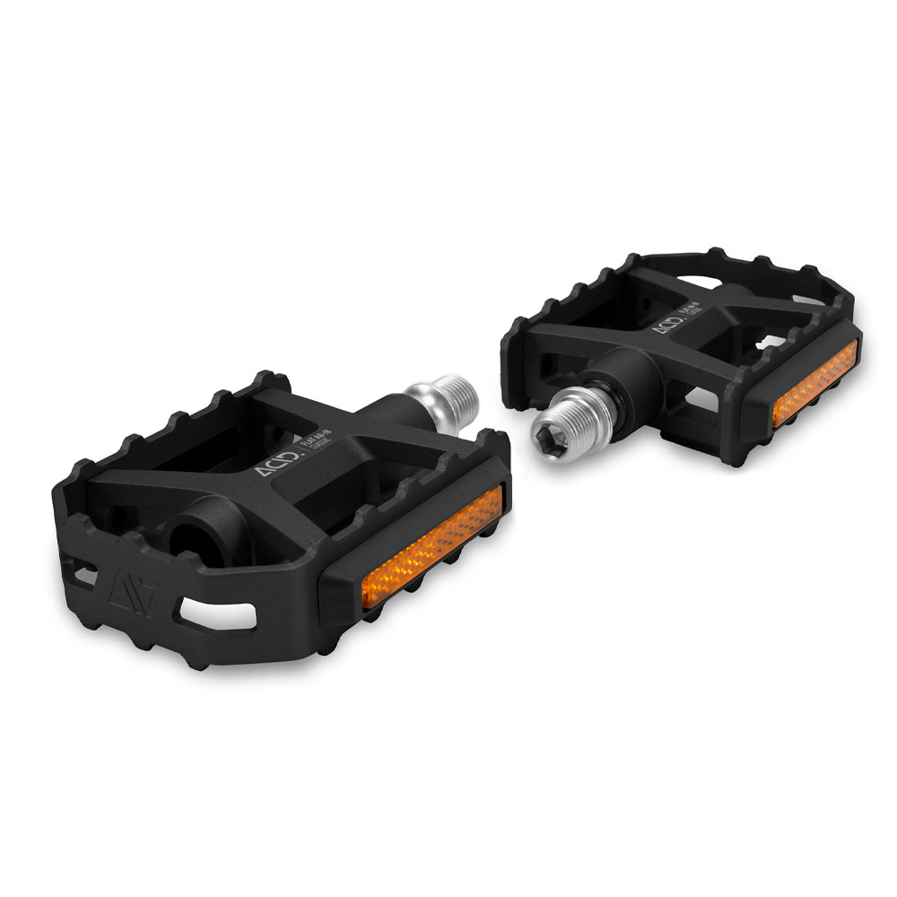 Платформенные педали с классическим дизайном для городского использования и повседневных поездок. Алюминиевый корпус с интегрированными пинами обеспечивает уверенное сцепление с любой обувью — удобно как для прогулок, так и для активного катания по асфальту и смешанным маршрутам. Прочная ось из Cr-Mo, изготовленная на CNC, работает на герметичном промышленном подшипнике и втулке LSL — это помогает сохранить плавность хода и ресурс при регулярной эксплуатации. В комплект входят четыре сертифицированных светоотражателя StVZO, повышающие заметность в потоке и соответствие требованиям дорожного движения Германии. Подходит и протестировано для нагрузки до 150 кг.