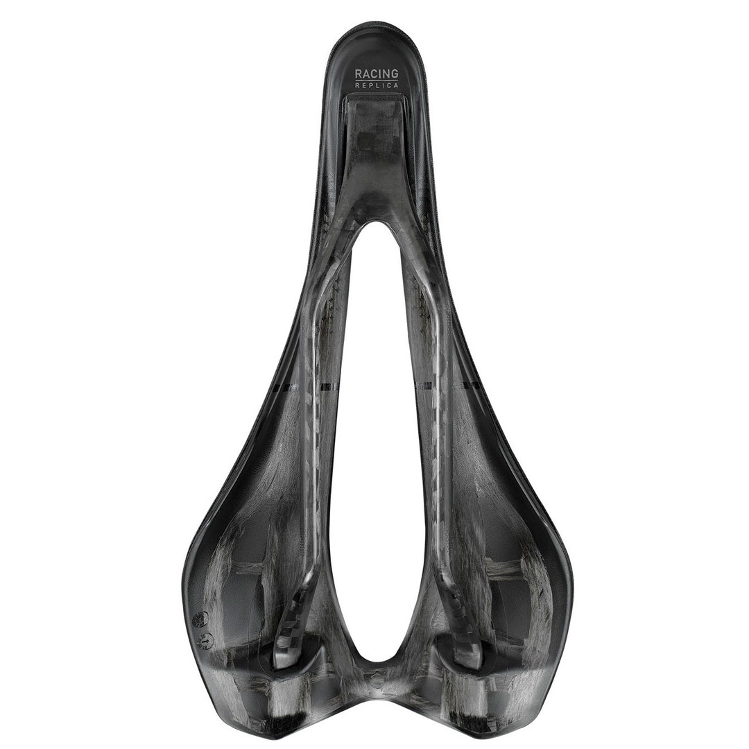 - Carbon Fiber Skeleton: основа седла выполнена из непрерывного карбонового каркаса, интегрированного в усиленную карбоном нейлоновую матрицу, что даёт высокую жёсткость при малой толщине и весе.