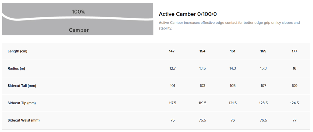 - Multi Radius Sidecut — сочетание короткого и длинного радиуса поворота обеспечивает универсальность: легко входить в поворот и сохранять стабильность на скорости.