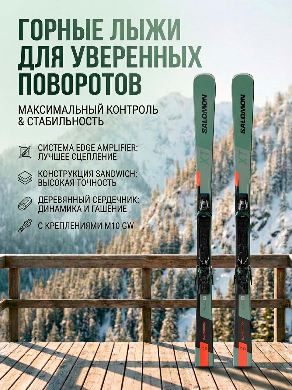 Salomon S/MAX 8 XT, созданные для лыжников, наслаждающихся точностью исполнения каждого поворота, сочетают в себе превосходные характеристики и современный внешний вид. Ширина талии 80 мм позволит вам без труда кататься на лыжах в любых снежных условиях.